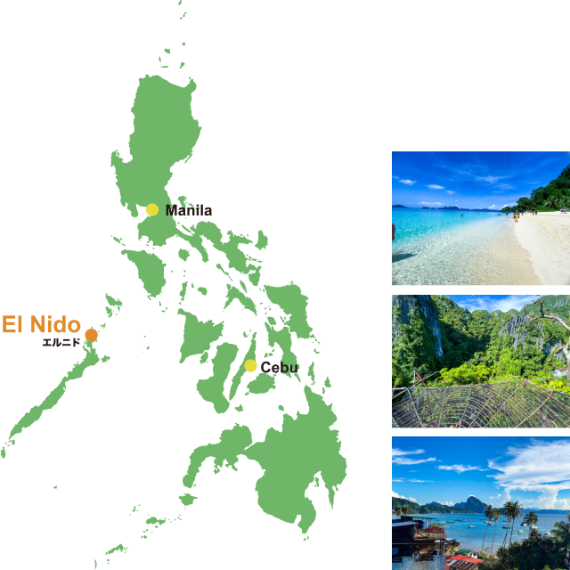 マニラまたはセブを経由し、フィリピン国内線(エアスイフト航空またはセブパシフィック航空)にてエルニドへ向かう形となります。